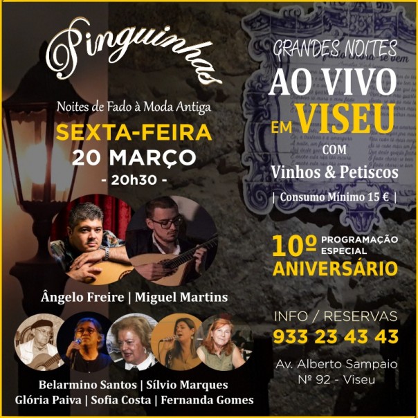 Venha recordar e cantar connosco os melhores Fados tradicionais na companhia dos grandes fadistas e guitarristas da nossa região e outros convidados. Servimos Petiscos e Caldo Verde a partir das 20h30. reserve a sua mesa para a família e amigos.